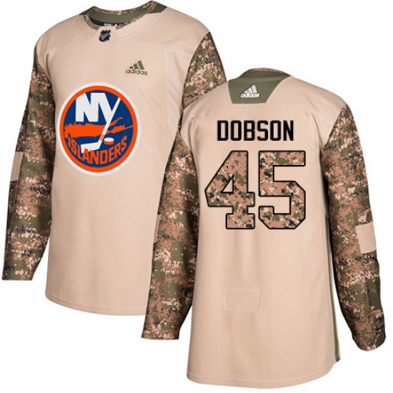 >Youth Adidas New York Islanders #45 Noah Dobson Authentic Camo Veterans Day Practice NHL Jersey