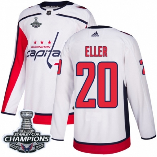 >Youth Adidas Washington Capitals #20 Lars Eller Authentic White Away 2018 Stanley Cup Final Champions NHL Jersey