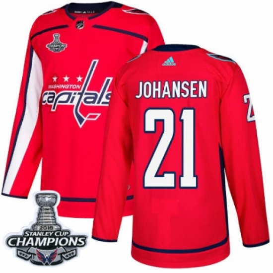 >Youth Adidas Washington Capitals #21 Lucas Johansen Authentic Red Home 2018 Stanley Cup Final Champions NHL Jersey
