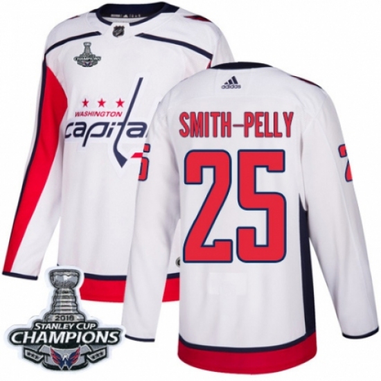 Men's Adidas Washington Capitals #25 Devante Smith-Pelly Authentic White Away 2018 Stanley Cup Final NHL Jersey