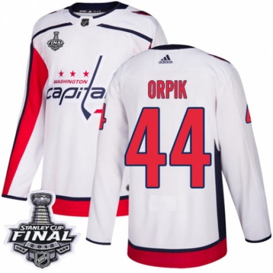 Men's Adidas Washington Capitals #44 Brooks Orpik Authentic White Away 2018 Stanley Cup Final Champions NHL Jersey