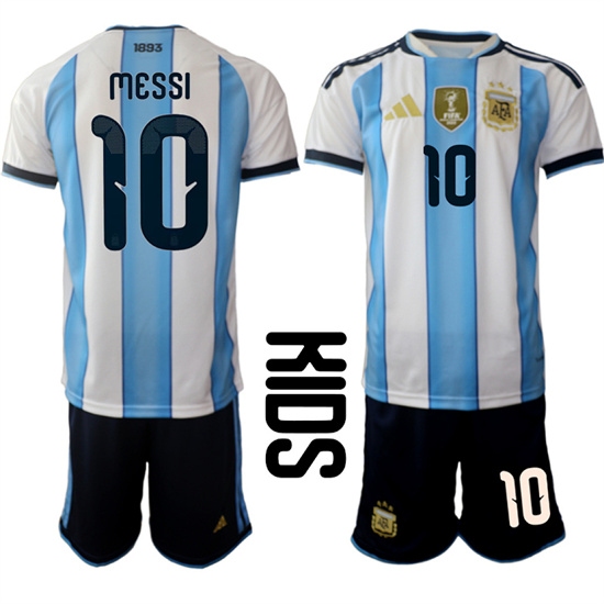 Youth Argentina #10 Lionel Messi National Team FIFA x World Cup 2026 Home White On Field Kids Jersey