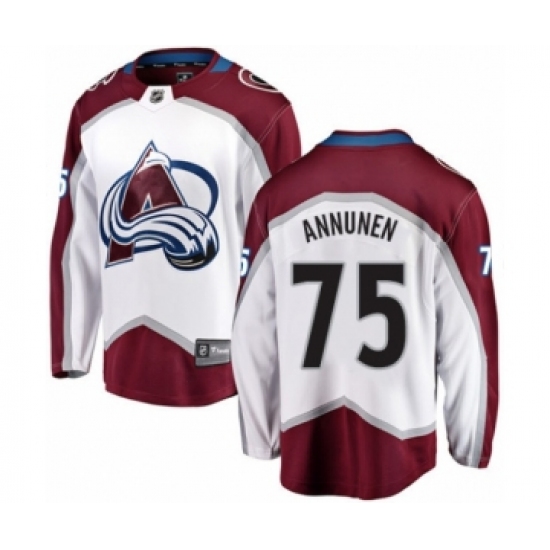 >Youth Colorado Avalanche #75 Justus Annunen Authentic White Away Fanatics Branded Breakaway NHL Jersey