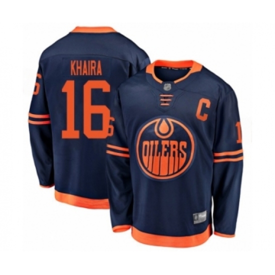 Men's Edmonton Oilers #16 Jujhar Khaira Authentic Navy Blue Alternate Fanatics Branded Breakaway Hockey Jersey