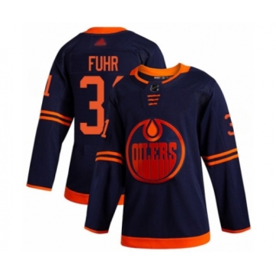 Men's Edmonton Oilers #31 Grant Fuhr Authentic Navy Blue Alternate Fanatics Branded Breakaway Hockey Jersey