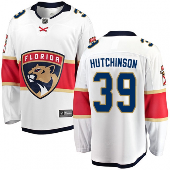 >Youth Florida Panthers #39 Michael Hutchinson Authentic White Away Fanatics Branded Breakaway NHL Jersey