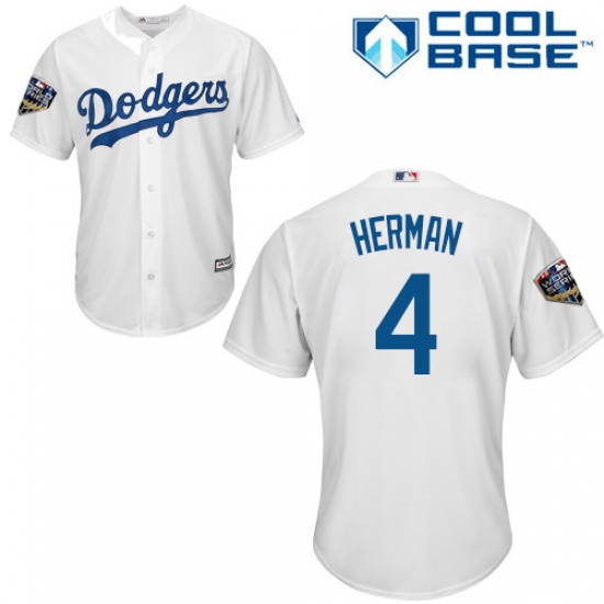 Youth Majestic Los Angeles Dodgers #4 Babe Herman Authentic White Home Cool Base 2018 World Series MLB Jersey