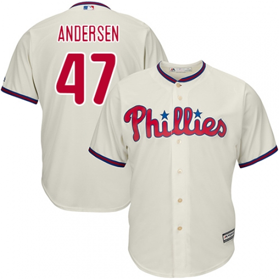 Home>MLB>Philadelphia Phillies>Larry Andersen>Youth Majestic Philadelphia Phillies #47 Larry Andersen Authentic Cream Alternate Cool Base MLB Jersey