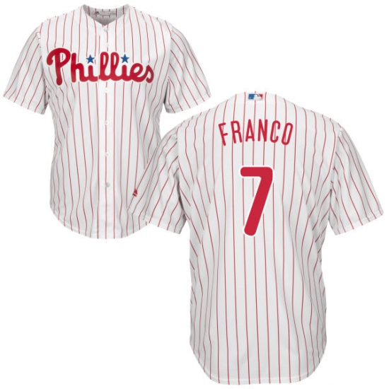 Home>MLB>Philadelphia Phillies>Maikel Franco>Youth Majestic Philadelphia Phillies #7 Maikel Franco Replica White/Red Strip Home Cool Base MLB Jersey