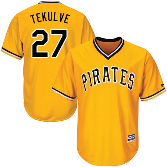 Home>MLB>Pittsburgh Pirates>Kent Tekulve>Youth Majestic Pittsburgh Pirates #27 Kent Tekulve Replica Gold Alternate Cool Base MLB Jersey