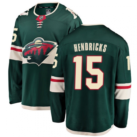 >Youth Minnesota Wild #15 Matt Hendricks Authentic Green Home Fanatics Branded Breakaway NHL Jersey