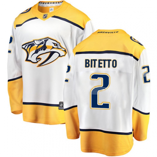 Home>NHL>Nashville Predators>Anthony Bitetto>Youth Nashville Predators #2 Anthony Bitetto Fanatics Branded White Away Breakaway NHL Jersey