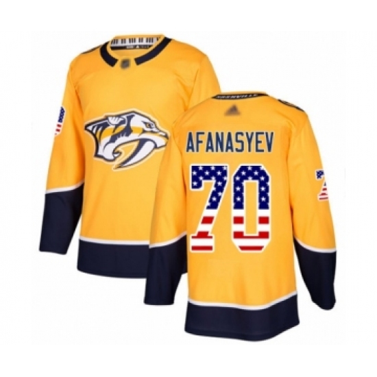 >Youth Nashville Predators #70 Egor Afanasyev Authentic Gold USA Flag Fashion Hockey Jersey