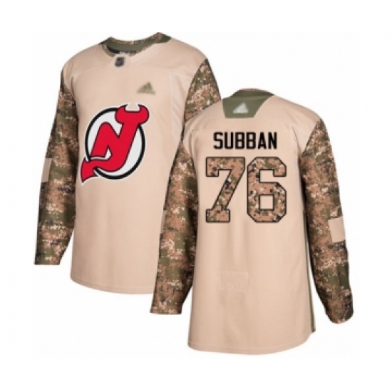 >Youth New Jersey Devils #76 P. K. Subban Authentic Camo Veterans Day Practice Hockey Jersey
