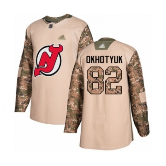 >Youth New Jersey Devils #82 Nikita Okhotyuk Authentic Camo Veterans Day Practice Hockey Jersey