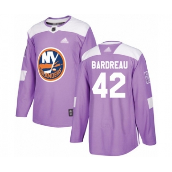 >Youth New York Islanders #42 Cole Bardreau Authentic Purple Fights Cancer Practice Hockey Jersey