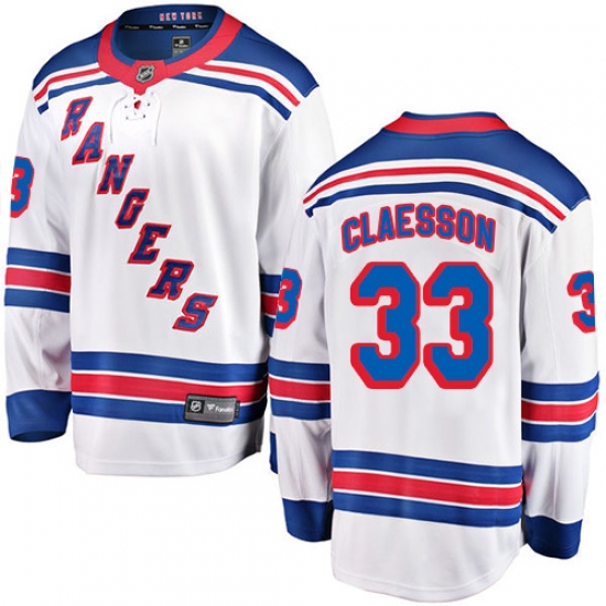 Men's New York Rangers #33 Fredrik Claesson Fanatics Branded White Away Breakaway NHL Jersey