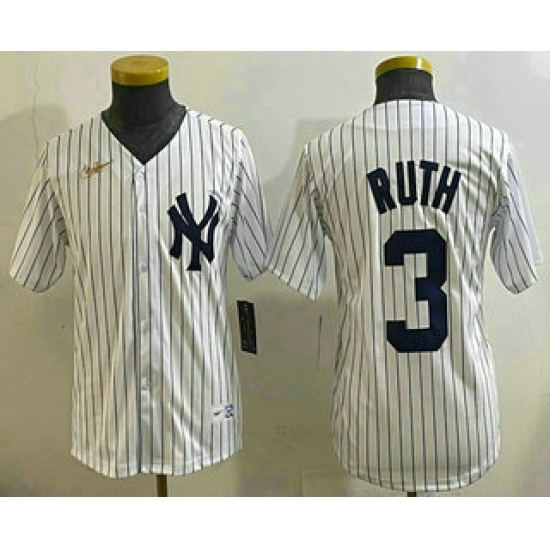 Youth New York Yankees #3 Babe Ruth White Throwback Stitched Cool Base Nike Jersey