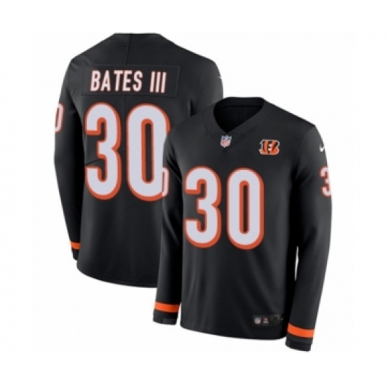 >Youth Nike Cincinnati Bengals #30 Jessie Bates III Limited Black Therma Long Sleeve NFL Jersey