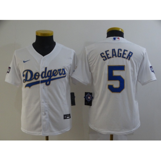 Youth Nike Los Angeles Dodgers #5 Corey Seager White Series Champions Jersey