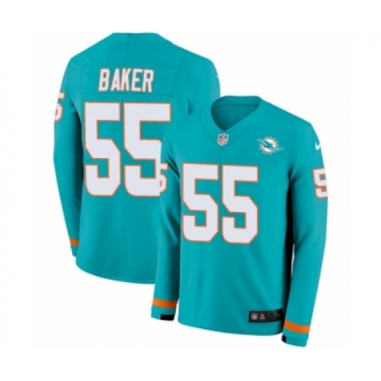 Youth Nike Miami Dolphins #55 Jerome Baker Limited Aqua Therma Long Sleeve NFL Jersey