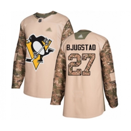 >Youth Pittsburgh Penguins #27 Nick Bjugstad Authentic Camo Veterans Day Practice Hockey Jersey