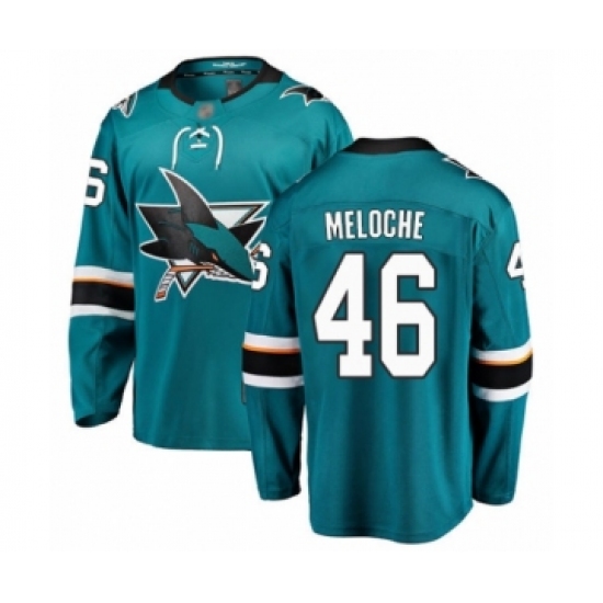 Men's San Jose Sharks #46 Nicolas Meloche Authentic Teal Green Home Hockey Jersey