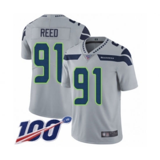 >Youth Seattle Seahawks #91 Jarran Reed Grey Alternate Vapor Untouchable Limited Player 100th Season Football Jersey