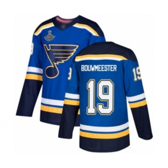 >Youth St. Louis Blues #19 Jay Bouwmeester Authentic Royal Blue Home 2019 Stanley Cup Champions Hockey Jersey