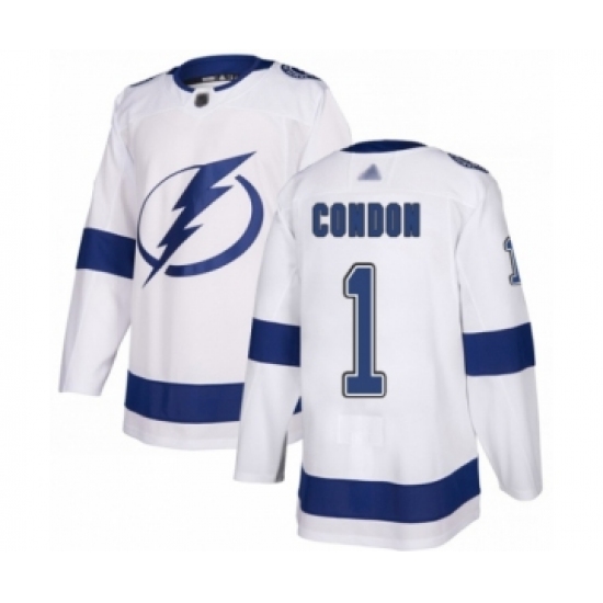 Youth Tampa Bay Lightning #1 Mike Condon Authentic White Away Hockey Jersey