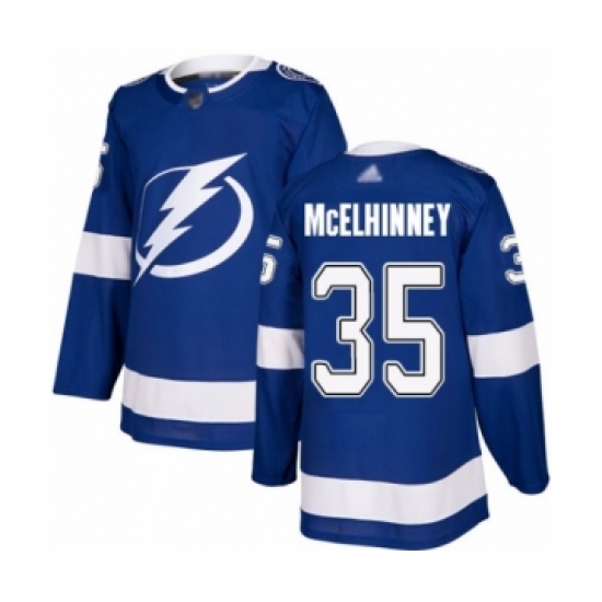 Men's Tampa Bay Lightning #35 Curtis McElhinney Fanatics Branded Blue Home Breakaway Hockey Jersey
