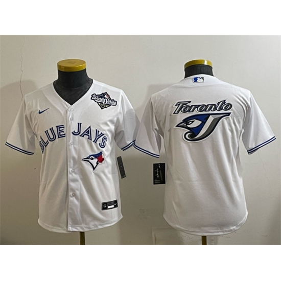 >Youth Toronto Blue Jays Team Big Logo White 2025 World Series Home Cool Base Stitched Baseball Jersey
