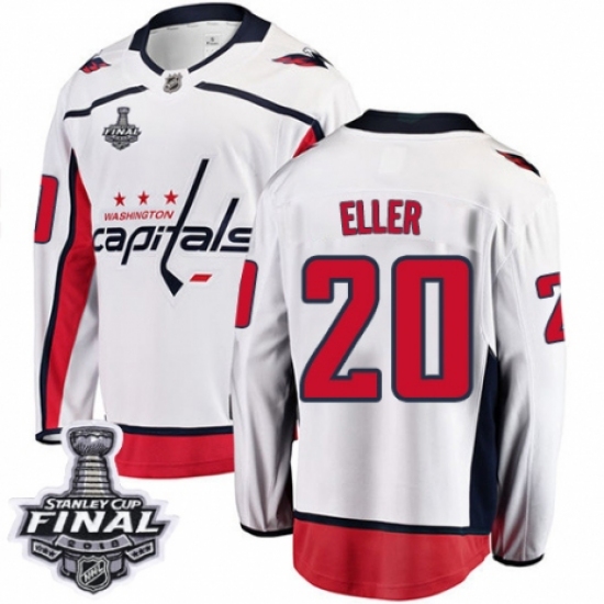 Youth Washington Capitals #20 Lars Eller Fanatics Branded White Away Breakaway 2018 Stanley Cup Final NHL Jersey