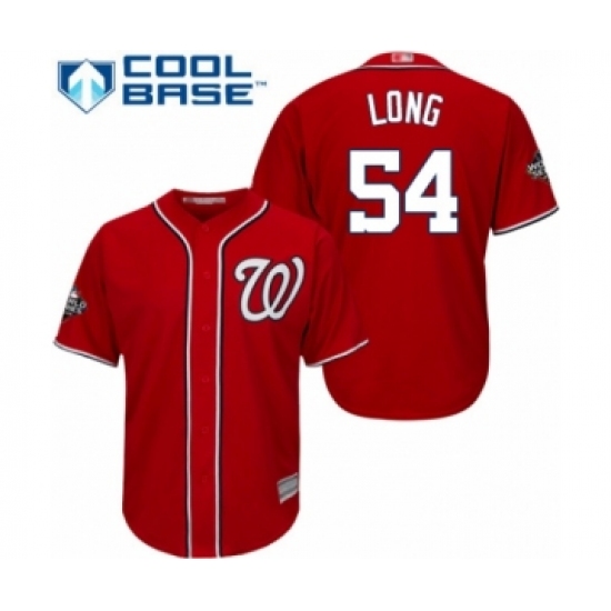 >Youth Washington Nationals #54 Kevin Long Authentic Red Alternate 1 Cool Base 2019 World Series Bound Baseball Jersey