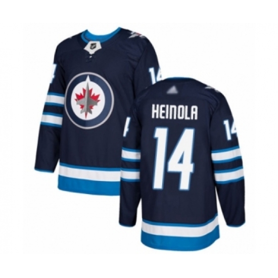 >Youth Winnipeg Jets #14 Ville Heinola Authentic Navy Blue Home Hockey Jersey