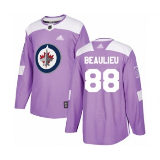 >Youth Winnipeg Jets #88 Nathan Beaulieu Authentic Purple Fights Cancer Practice Hockey Jersey