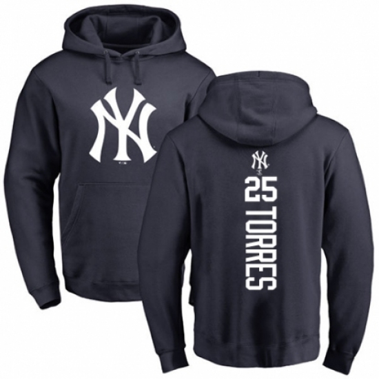 >MLB Nike New York Yankees #25 Gleyber Torres Navy Blue Backer Pullover Hoodie