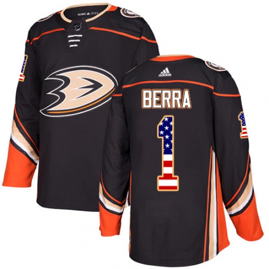 Men's Adidas Anaheim Ducks #1 Reto Berra Authentic Black USA Flag Fashion NHL Jersey