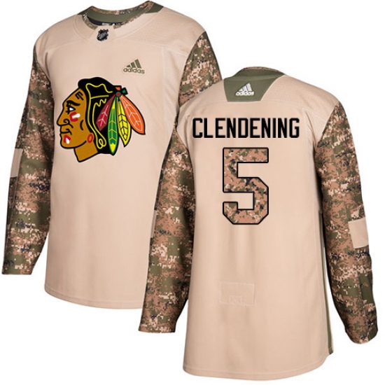 Men's Adidas Chicago Blackhawks #5 Adam Clendening Authentic Camo Veterans Day Practice NHL Jersey