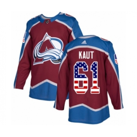 Men's Adidas Colorado Avalanche #61 Martin Kaut Authentic Burgundy Red USA Flag Fashion NHL Jersey