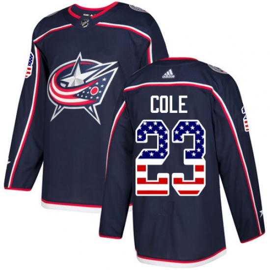 Men's Adidas Columbus Blue Jackets #23 Ian Cole Authentic Navy Blue USA Flag Fashion NHL Jerse