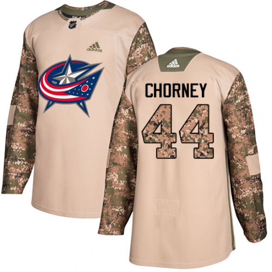 >Men's Adidas Columbus Blue Jackets #44 Taylor Chorney Authentic Camo Veterans Day Practice NHL Jersey