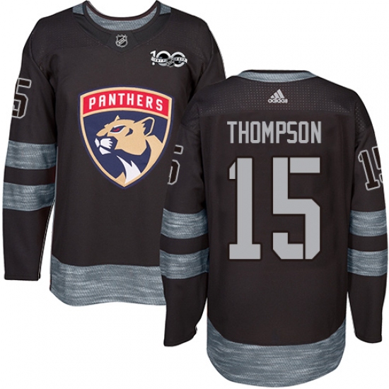 >Men's Adidas Florida Panthers #15 Paul Thompson Authentic Black 1917-2017 100th Anniversary NHL Jersey