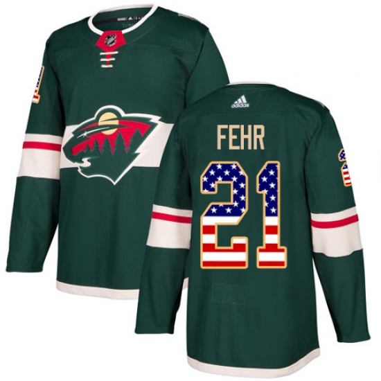 Men's Adidas Minnesota Wild #21 Eric Fehr Authentic Green USA Flag Fashion NHL Jersey