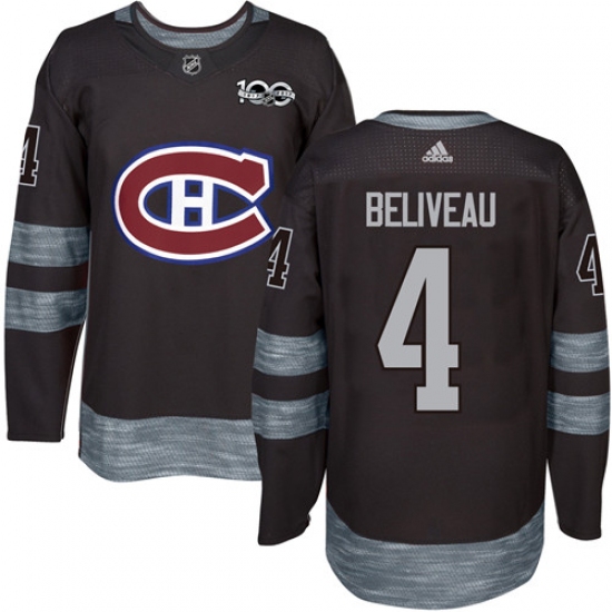 Men's Adidas Montreal Canadiens #4 Jean Beliveau Authentic Black 1917-2017 100th Anniversary NHL Jersey