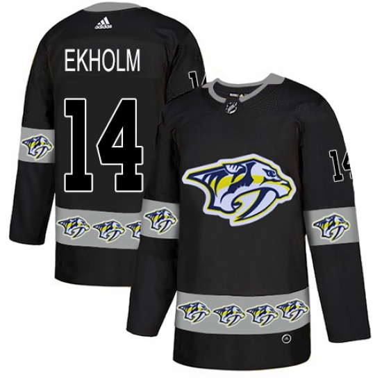 Men's Adidas Nashville Predators #14 Mattias Ekholm Authentic Black Team Logo Fashion NHL Jersey