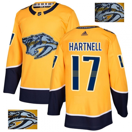 >Men's Adidas Nashville Predators #17 Scott Hartnell Authentic Gold Fashion Gold NHL Jersey