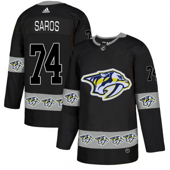 Men's Adidas Nashville Predators #74 Juuse Saros Authentic Black Team Logo Fashion NHL Jersey