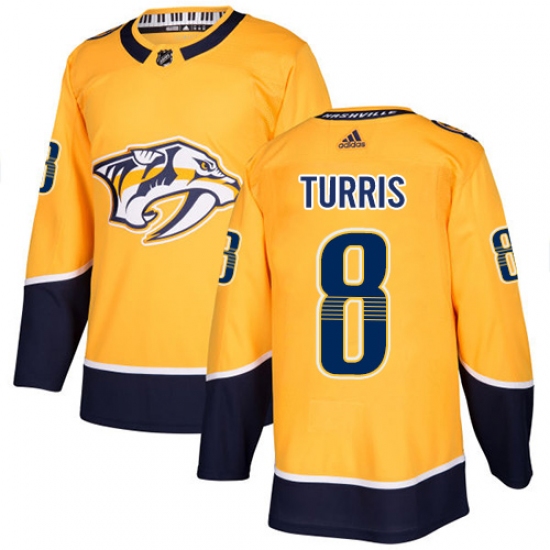 >Men's Adidas Nashville Predators #8 Kyle Turris Authentic Gold Home NHL Jersey