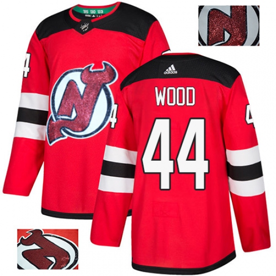 >Men's Adidas New Jersey Devils #44 Miles Wood Authentic Red Fashion Gold NHL Jersey
